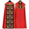 Casula semigótica bordada em alto relevo com listra de tecido em veludo e com fios metalizados de altíssima qualidade.