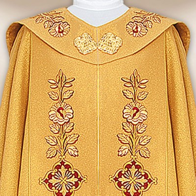Casula gótica bordado na frente e atrás com fio dourado de altíssima qualidade.