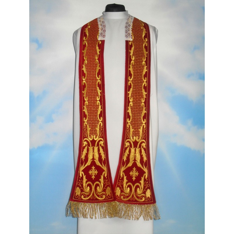 Estola romana bordada com linha dourada de altíssima qualidade.