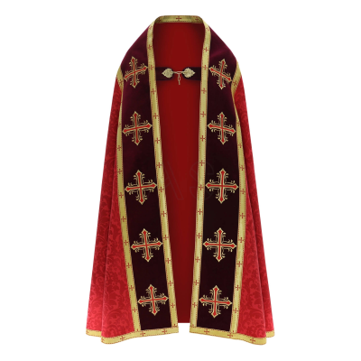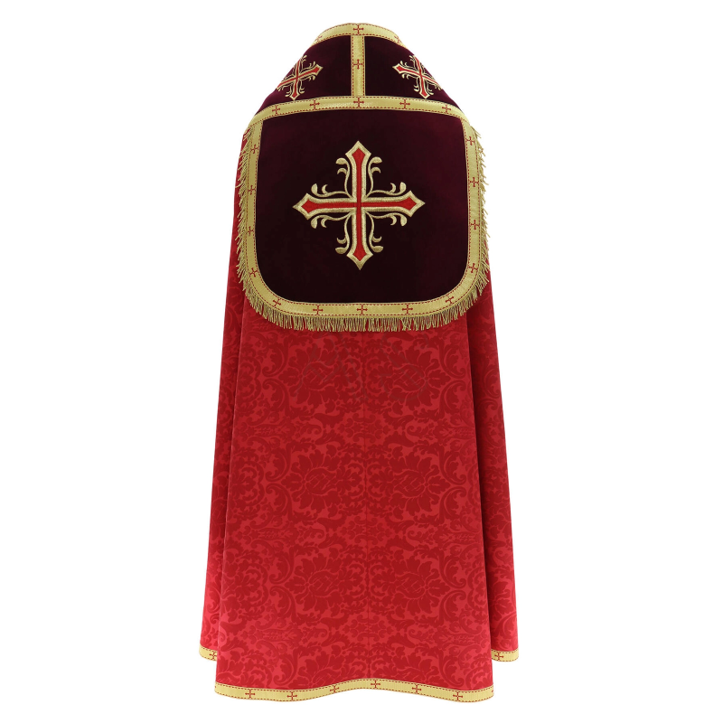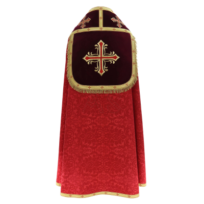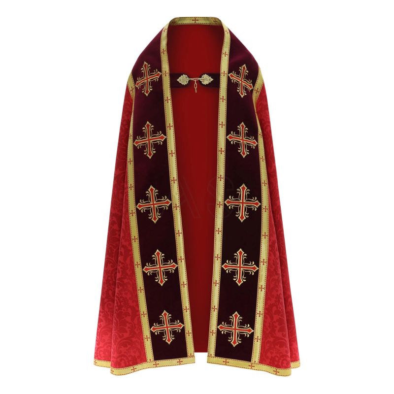 Capa de Asperge romana com bordados em veludo. Tecido Adamascado.