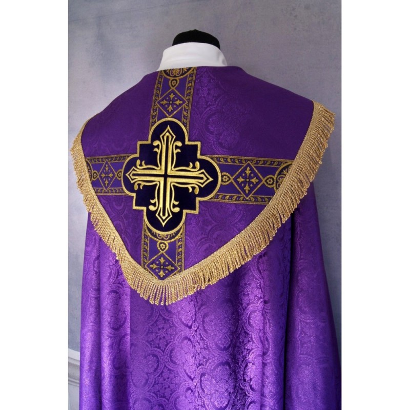 Casula gótica com bordado na frente e atrás.