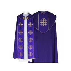 Capa gótica bordada com listra de tecido com a Cruz de Jerusalém de altíssima qualidade.