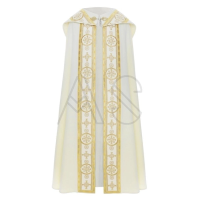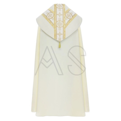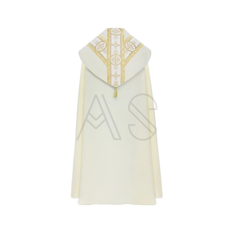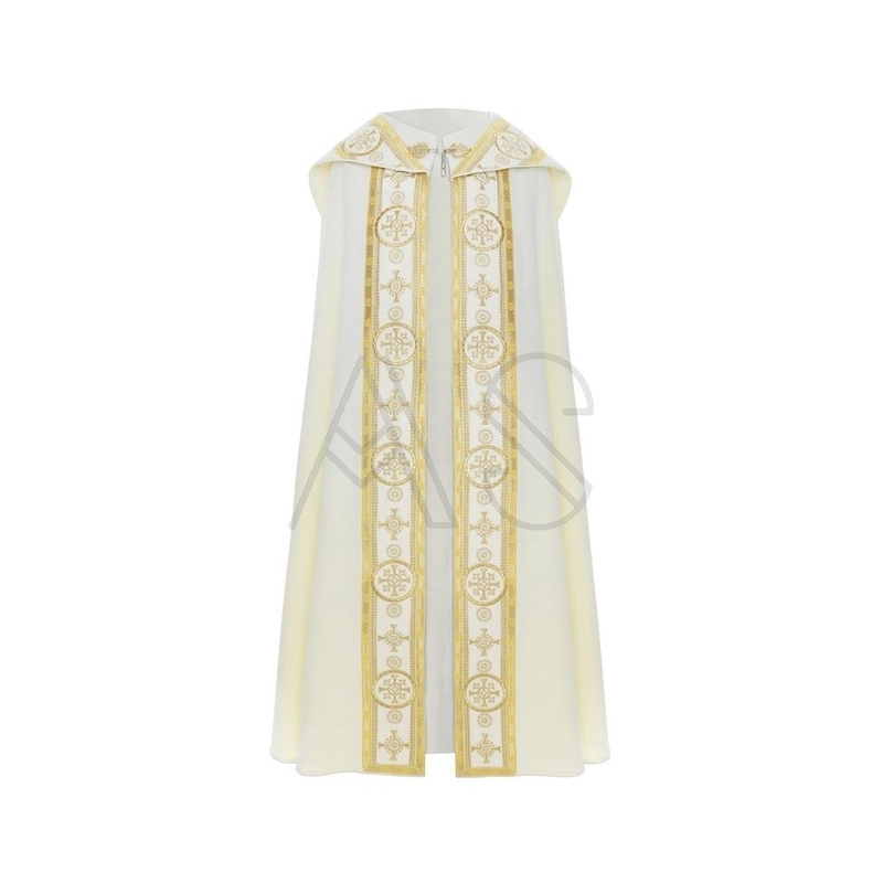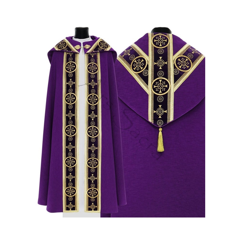 O galão e capuz são confeccionados com tecido de veludo.