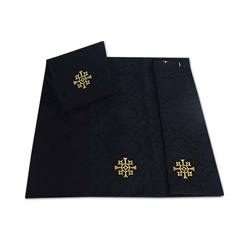 Capa gótica bordada em alto relevo com fios metalizados dourado de altíssima qualidade.