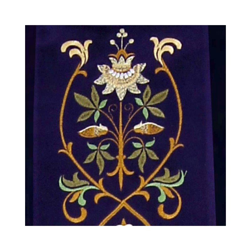Casula semigótica bordada na frente e atrás com listra de tecido de veludo e fio metalizado de altíssima qualidade.