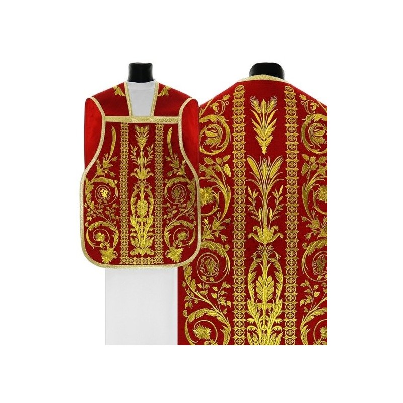 Casula romana bordada na frente e atrás em alto relevo de altíssima qualidade.