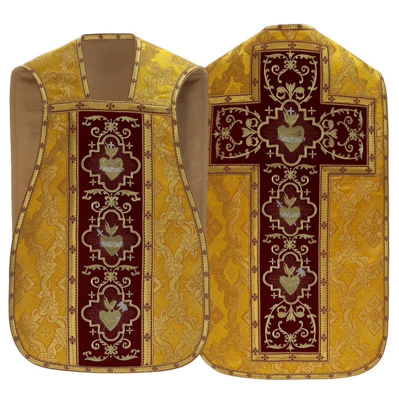 Casula romana bordada com o Sagrado Coração de Jesus de altíssima qualidade.