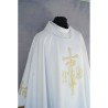 Acompanha uma estola bordada com uma cruz dourada.