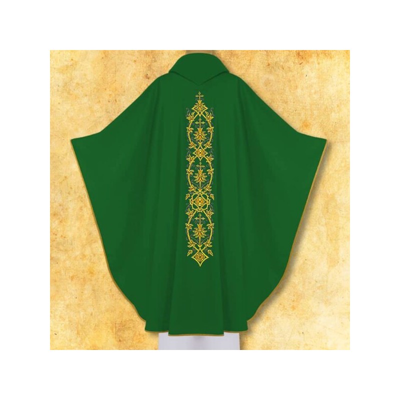 Casula gótica bordada na frente e atrás com fio dourado de altíssima qualidade.