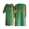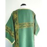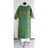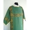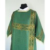 Dalmática gótica decorada com fitas. Tecido Adamascado.