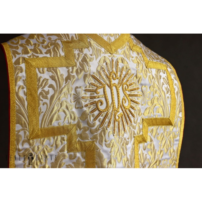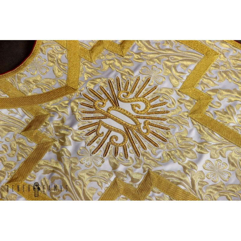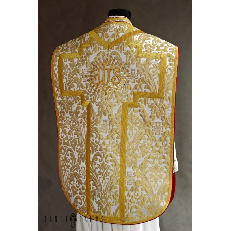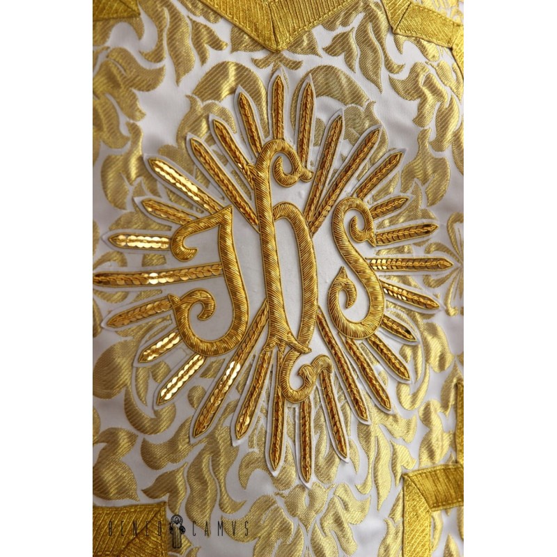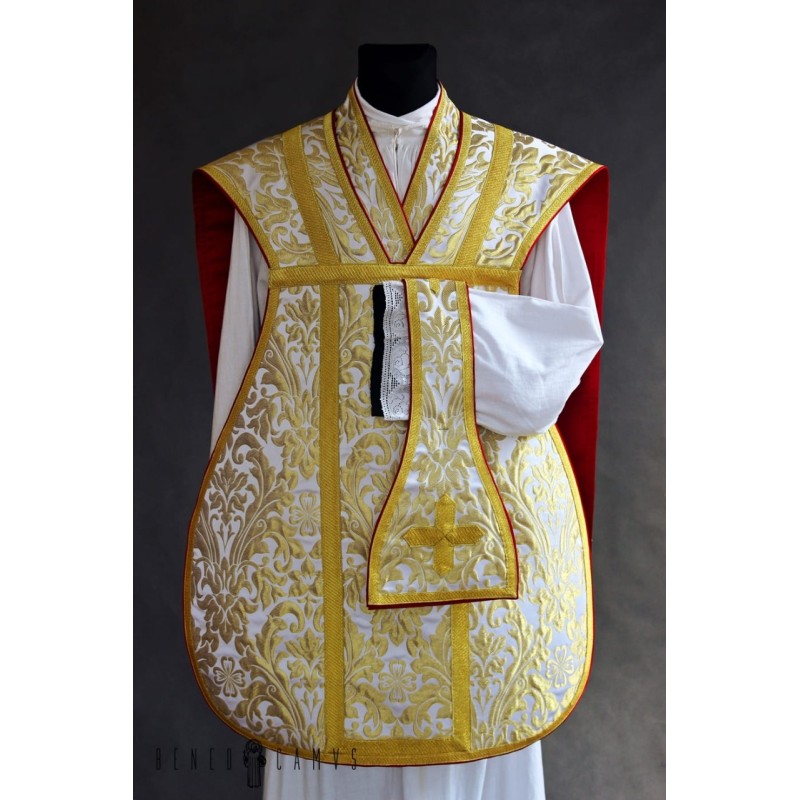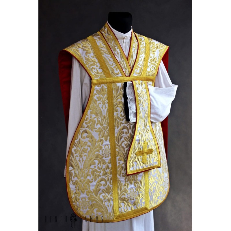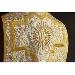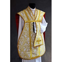 Casula gótica bordado com fio metalizado dourado de altíssima qualidade.