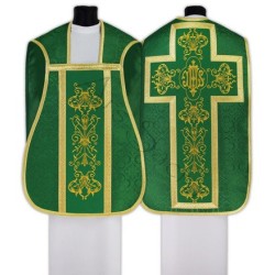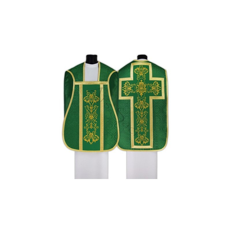 Casula romana bordada em alto relevo com linha dourada de altíssima qualidade.