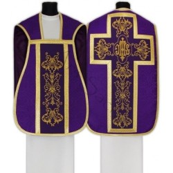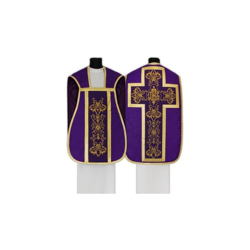 Casula romana bordada em alto relevo com linha dourada de altíssima qualidade.