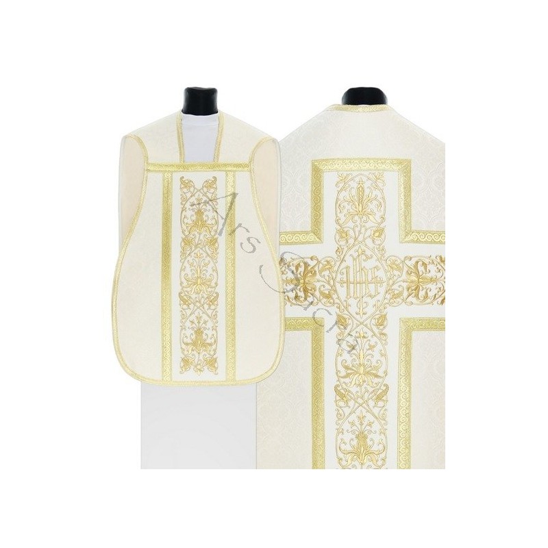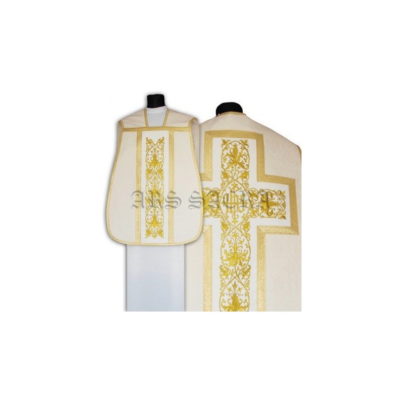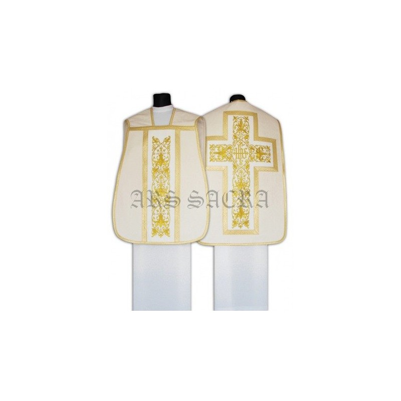 Casula romana bordada em alto relevo com linha dourada de altíssima qualidade.
