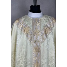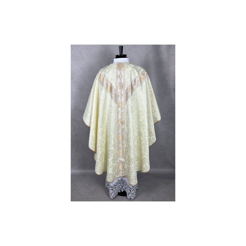 Casula semigótica bordada na frente e atrás com fios metalizados de altíssima qualidade.