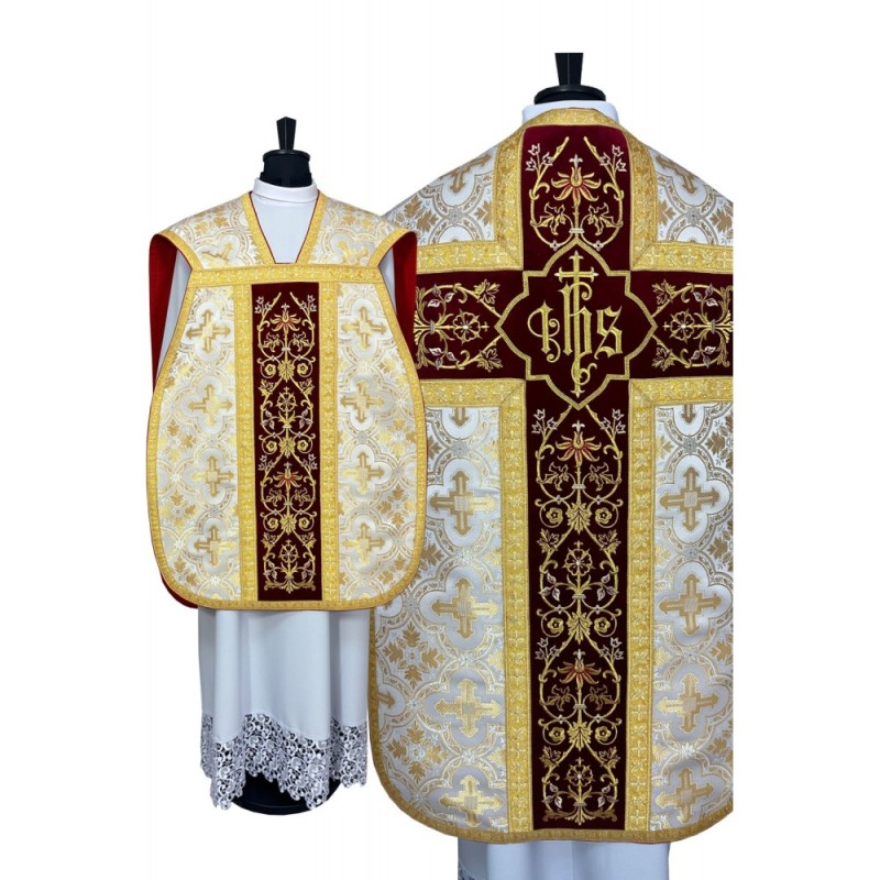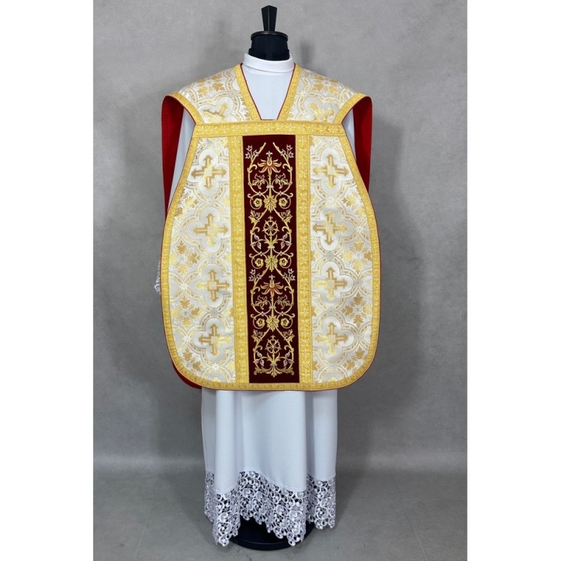 Casula romana bordada na frente e atrás em alto relevo de altíssima qualidade.