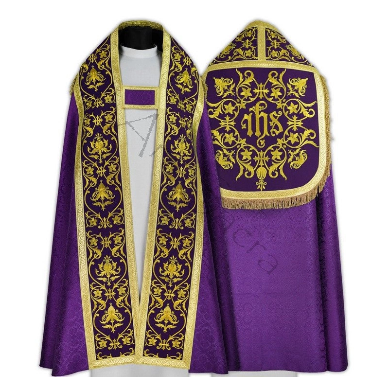 Capa de asperge romana bordada em alto relevo com linha dourada de altíssima qualidade.