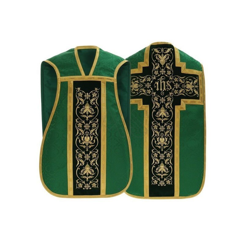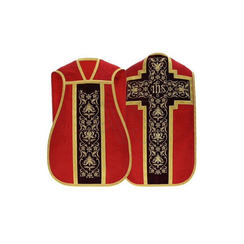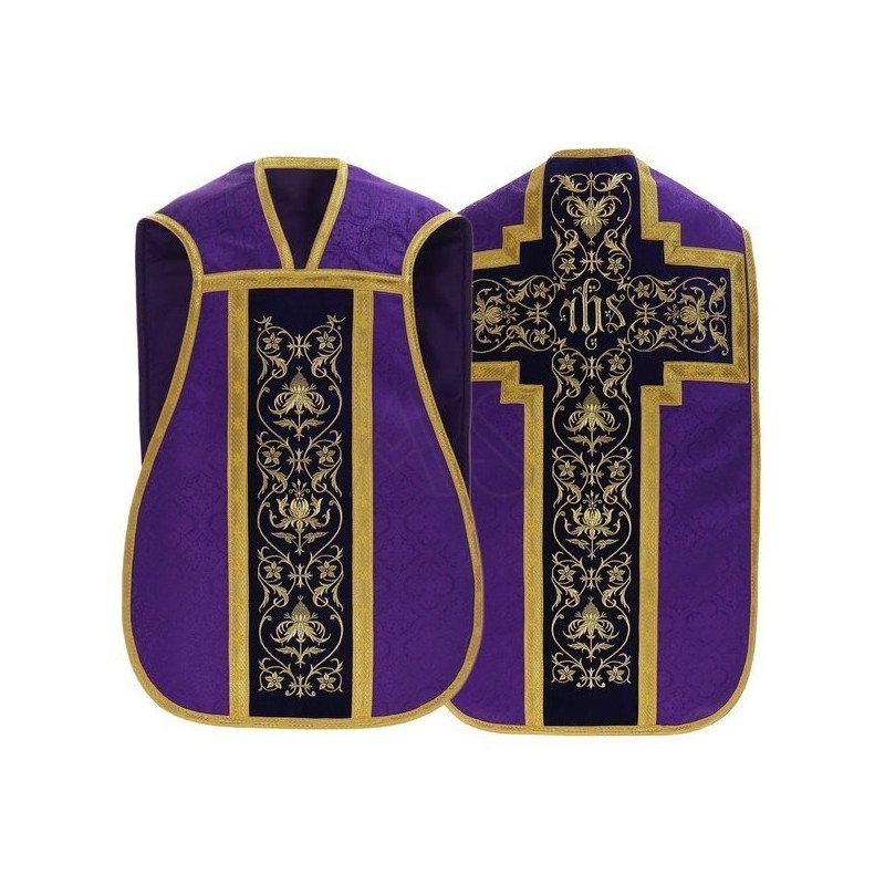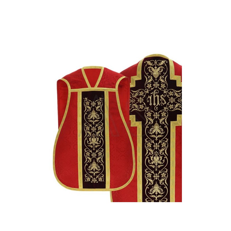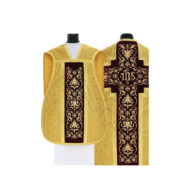 Casula romana bordada em alto relevo com linha dourada de altíssima qualidade.
