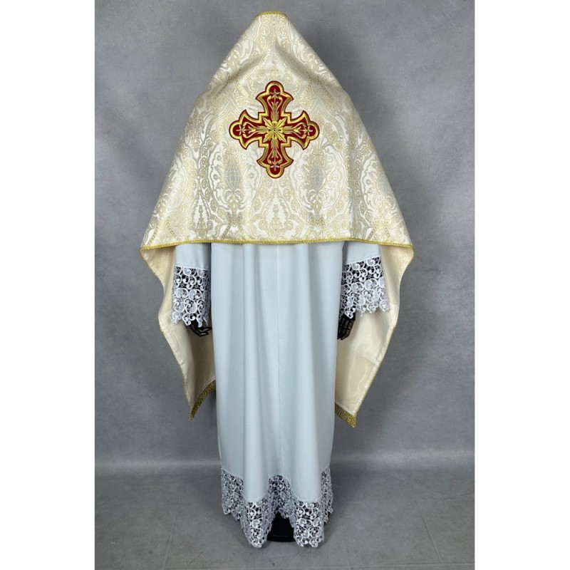 Véu umeral litúrgico bordado na parte de trás em alto relevo de altíssima qualidade.