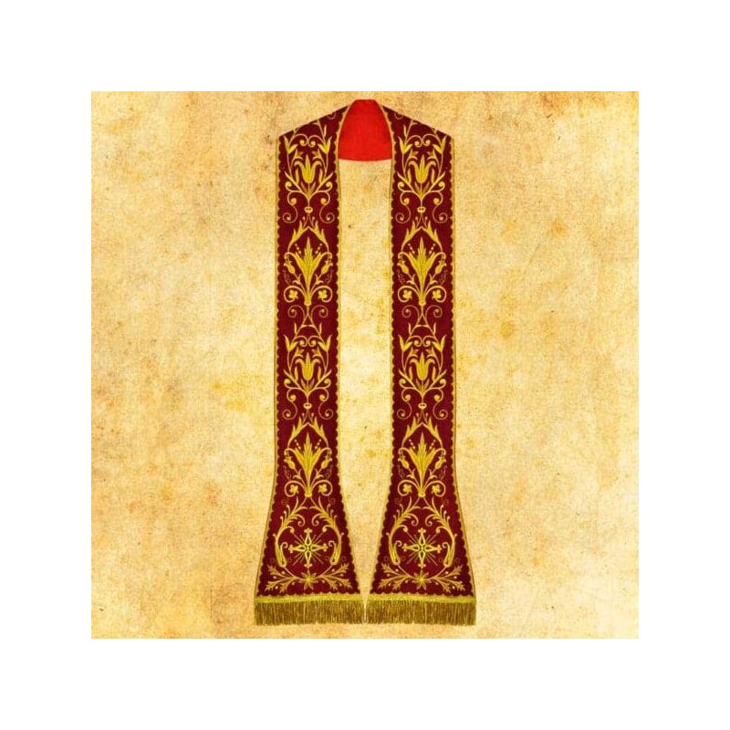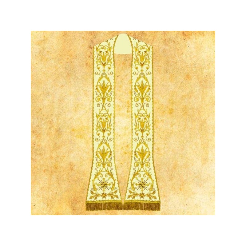 Estola romana bordada em alto relevo com linha dourada de altíssima qualidade.