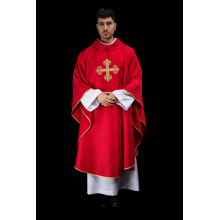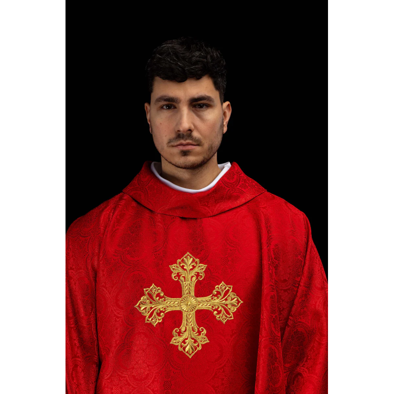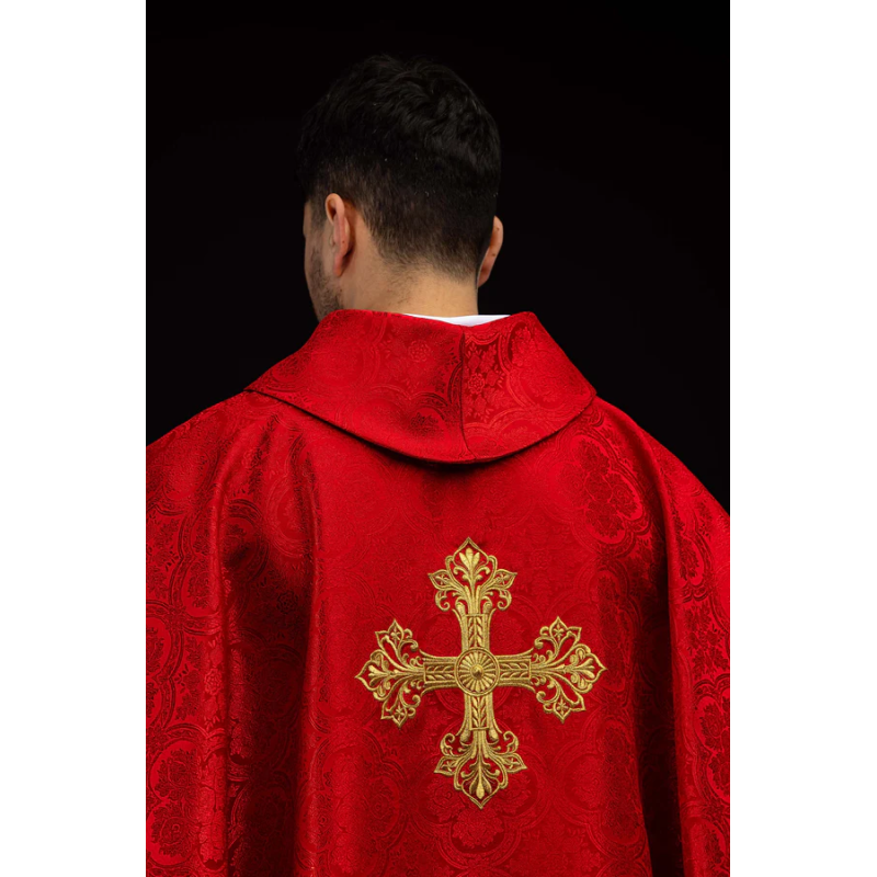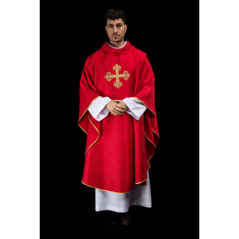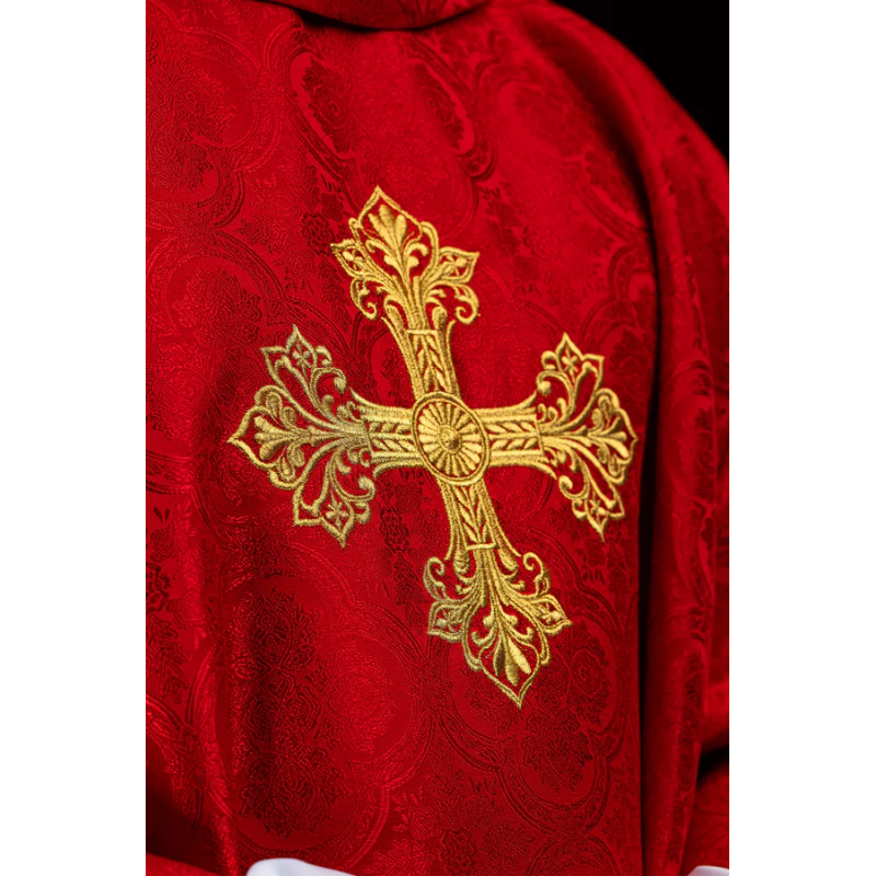 Casula gótica com bordado na frente e atrás e acabamento em cetim.
