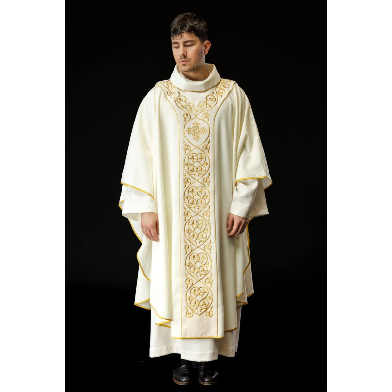 Casula gótica com bordado na frente e atrás. com galão bordado no veludo.