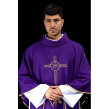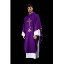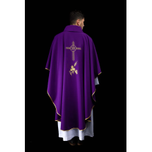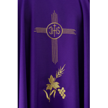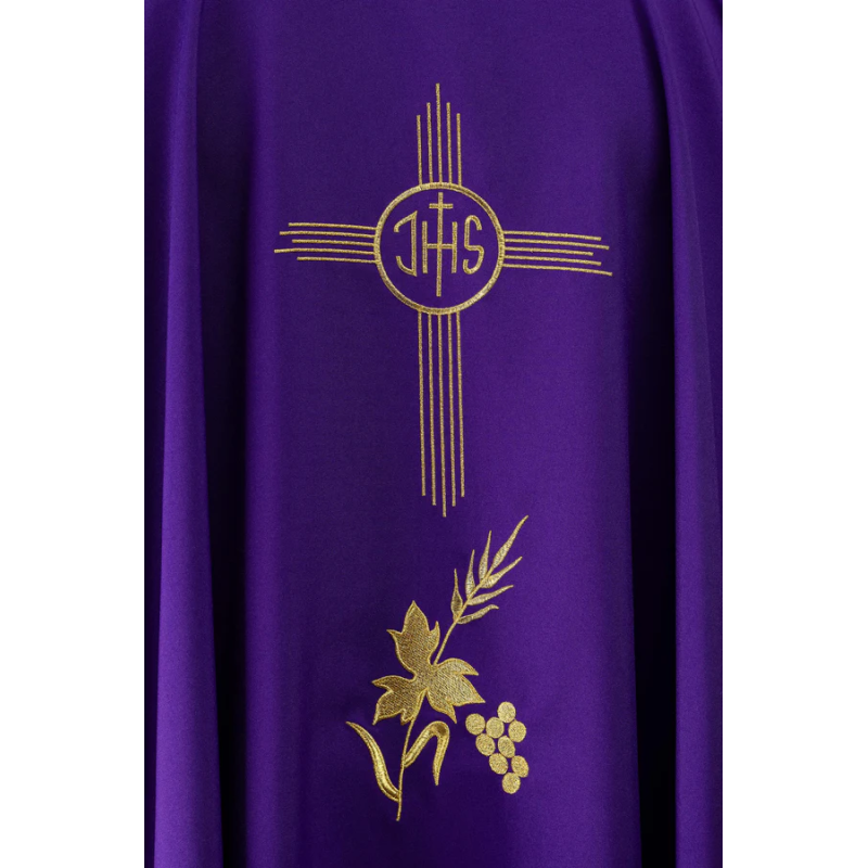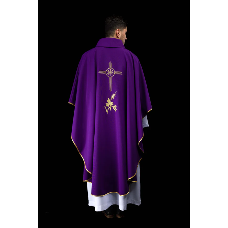 Casula gótica com bordado na frente e atrás e acabamento em cetim.