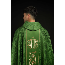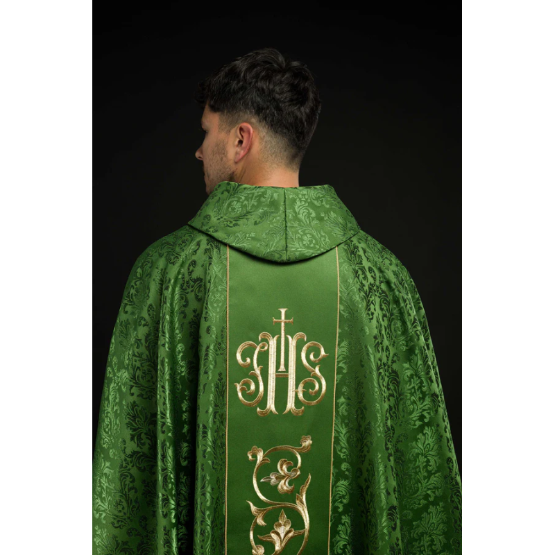 Casula gótica com bordado na frente e atrás.