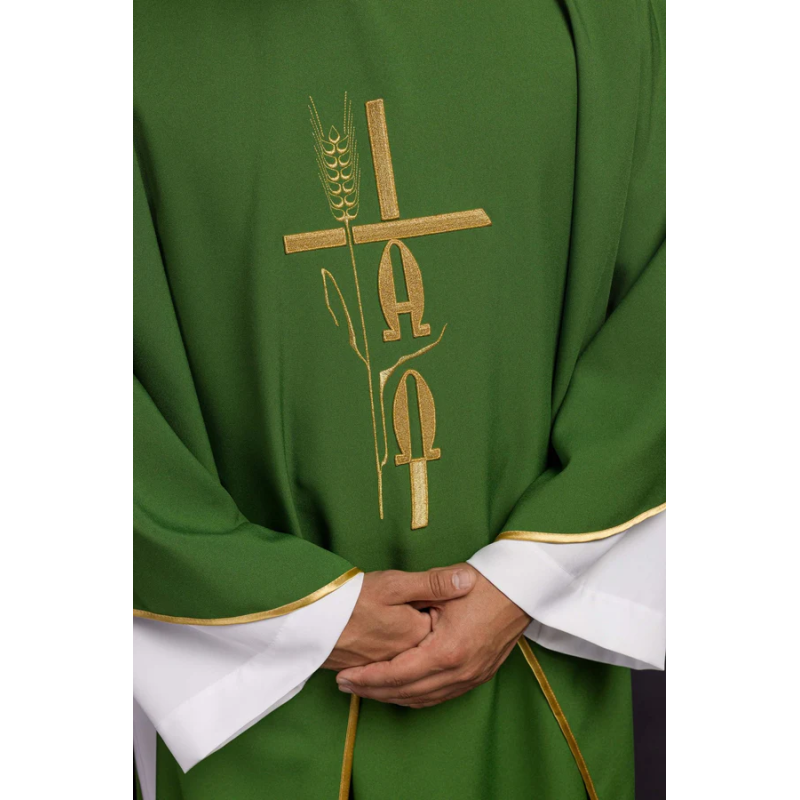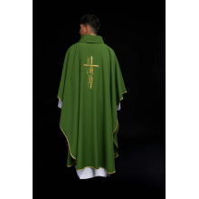 Casula gótica com bordado na frente e atrás.