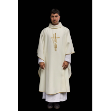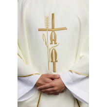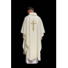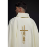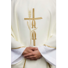 Casula semigótica bordada em alto relevo com listra de tecido em veludo.