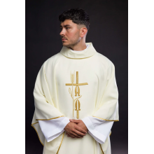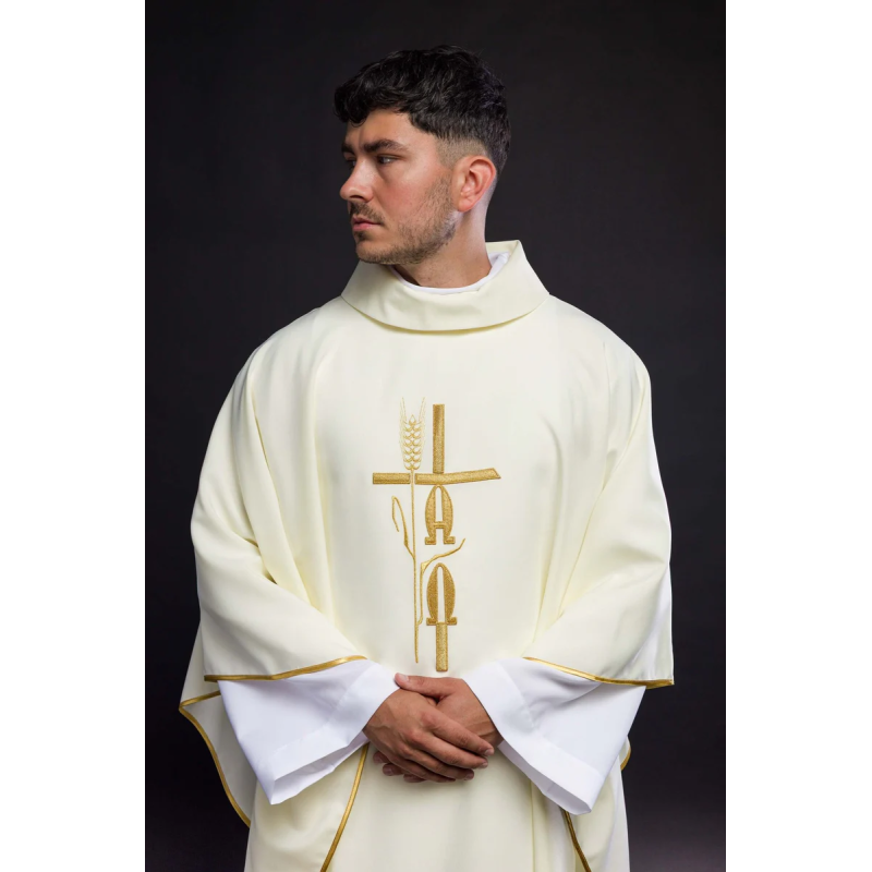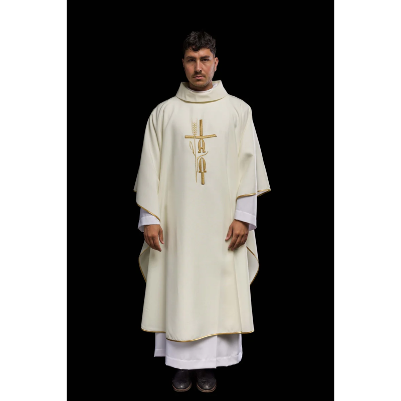 Casula gótica com galão bordado no computador na frente igual nas costas de altíssima qualidade.
