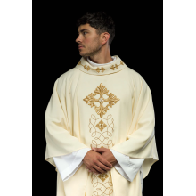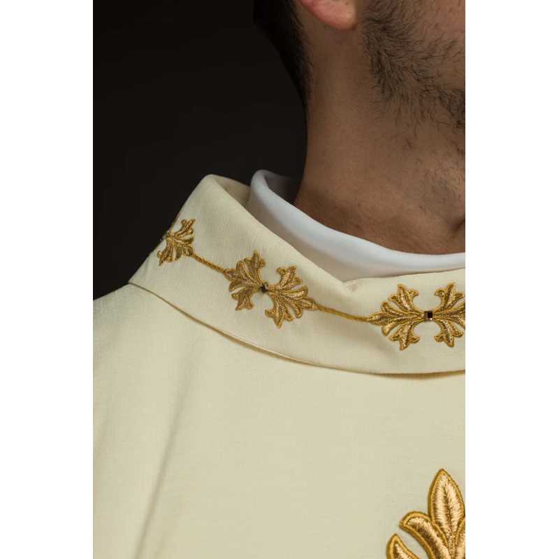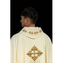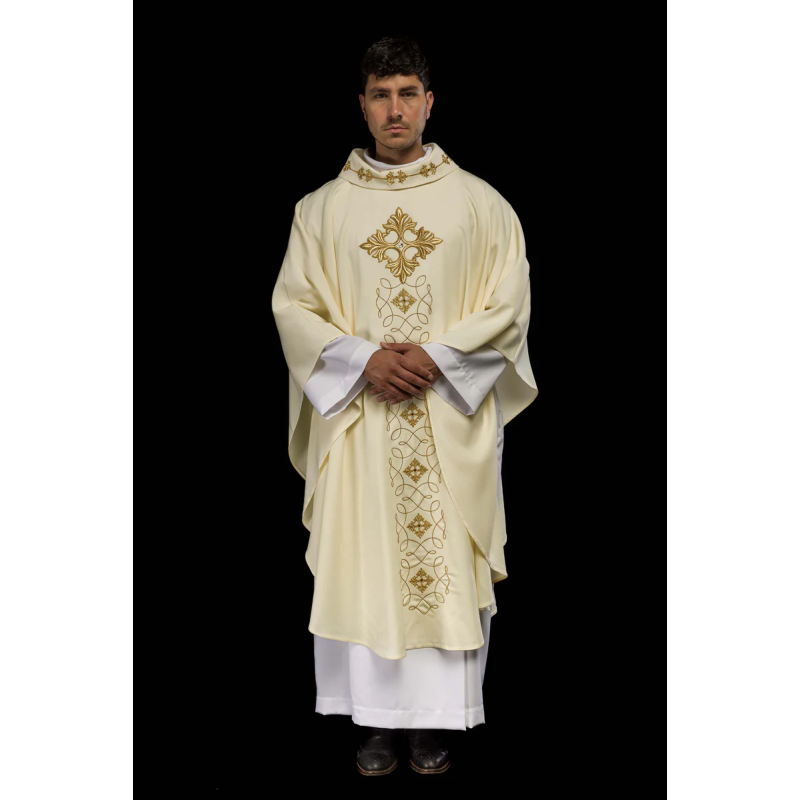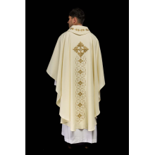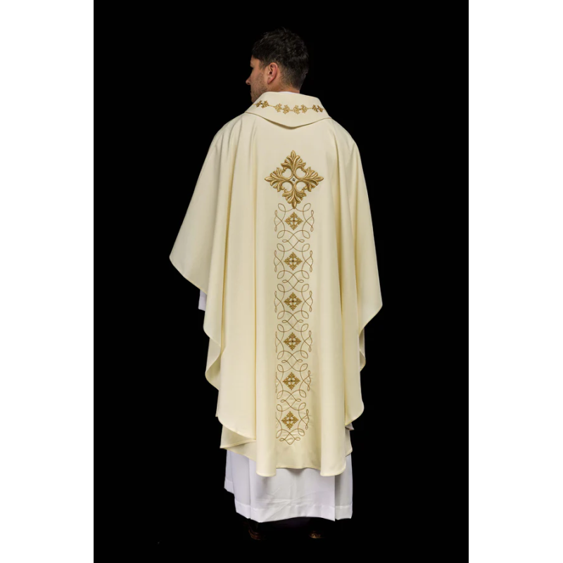 Casula gótica com bordado na frente e atrás. Acabamento em fios de cetim.