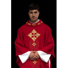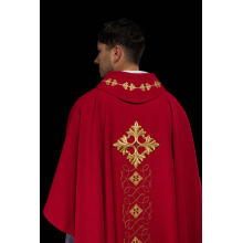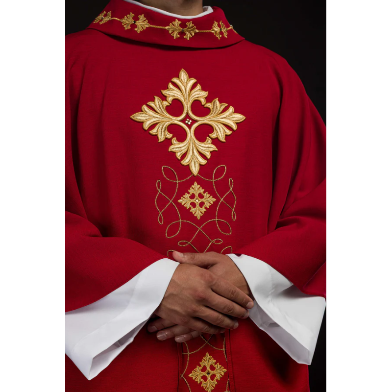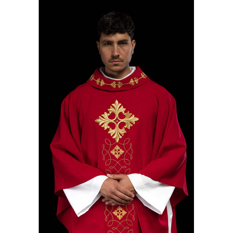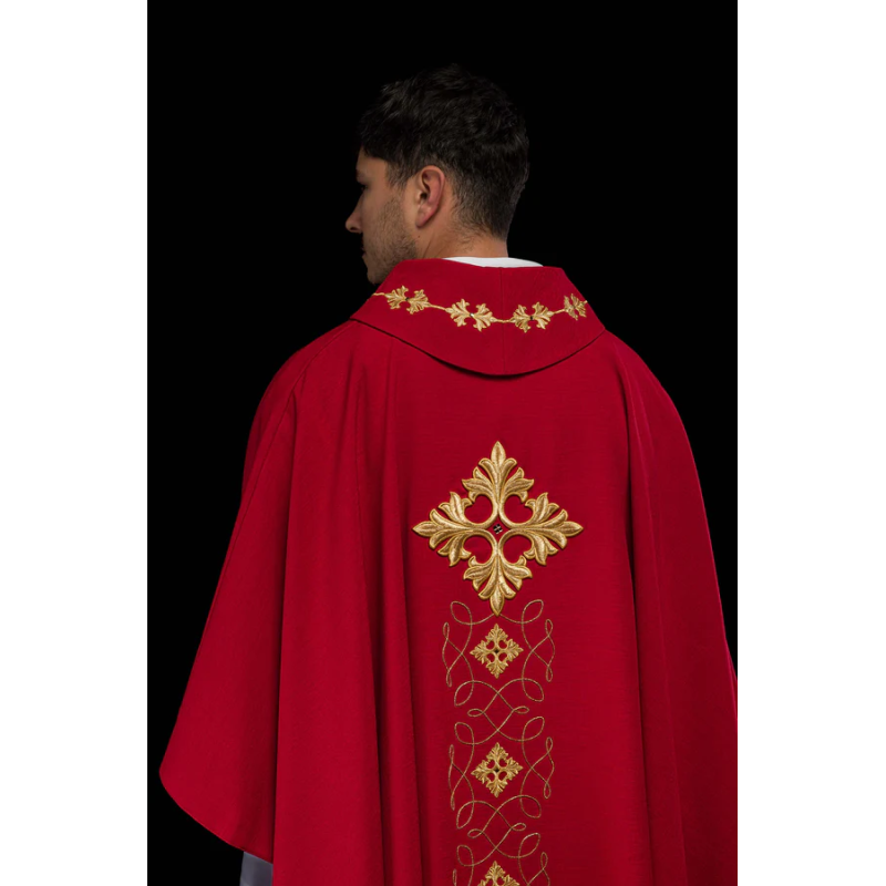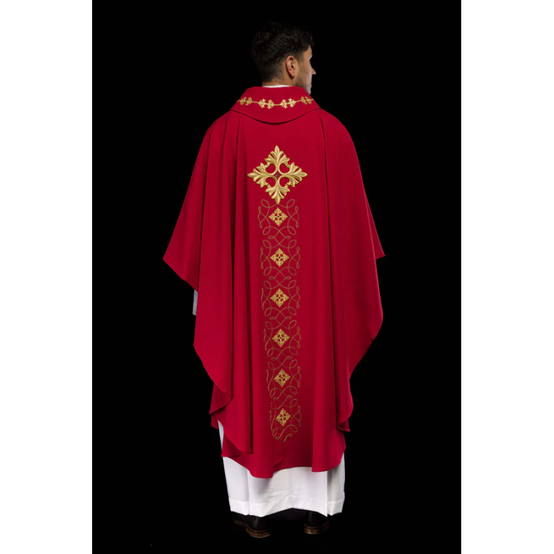 Casula gótica com bordado na frente e atrás. Acabamento em fios de cetim.