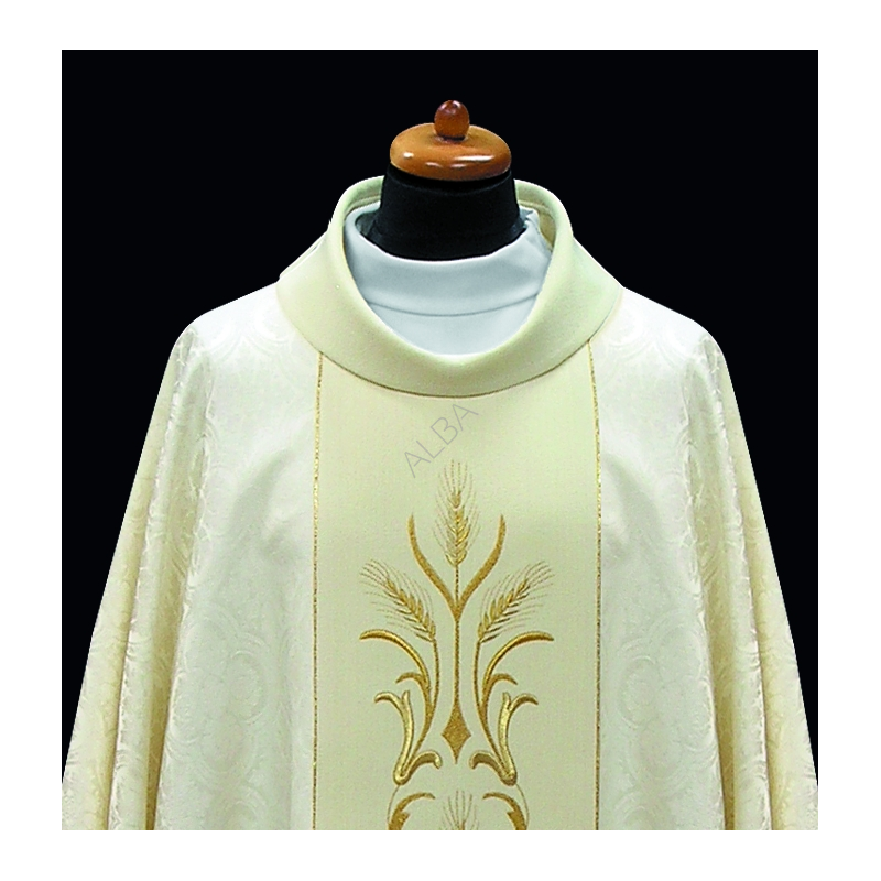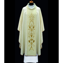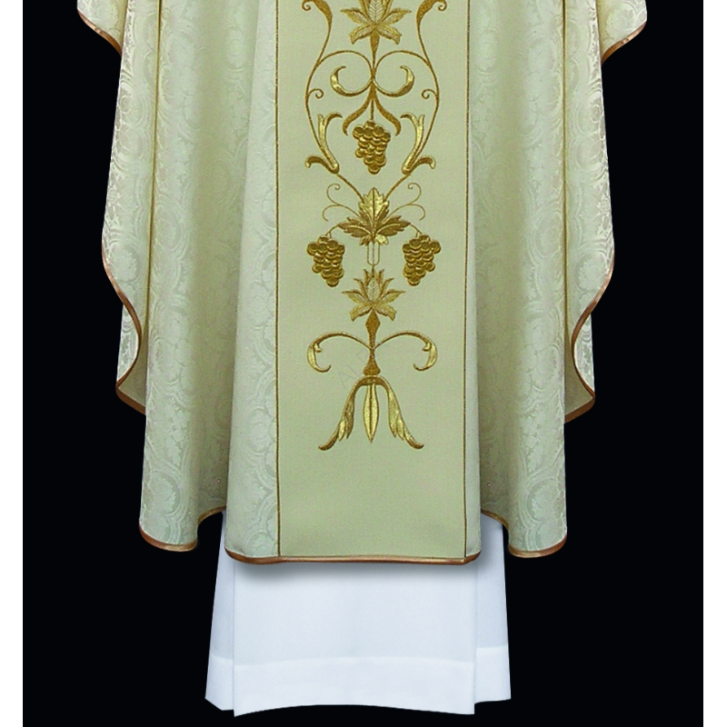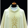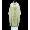 Casula romana bordada em alto relevo com linha dourada.