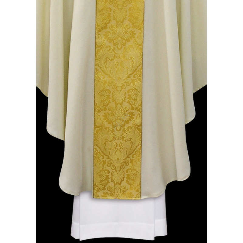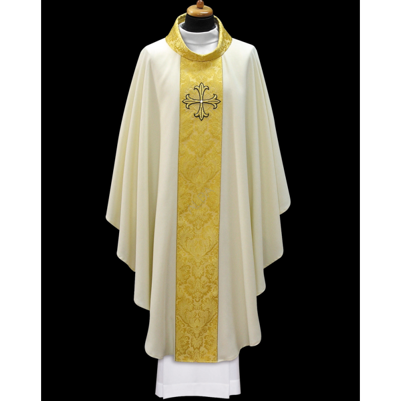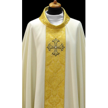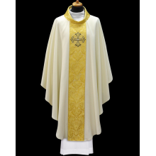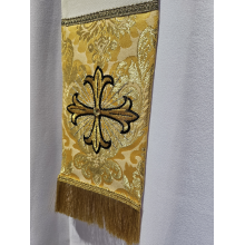 Casula gótica bordada na frente e atrás em alto relevo com fio dourado de altíssima qualidade.