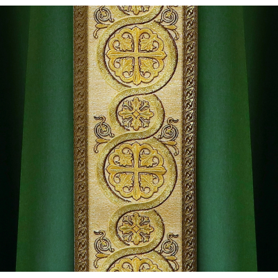 Dalmática romana bordada em alto relevo com linha dourada de altíssima qualidade.