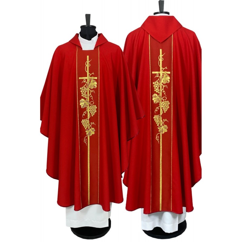 Casula gótica com bordado na frente e atrás.