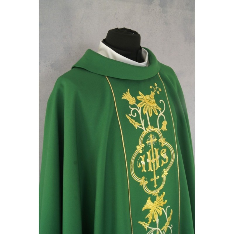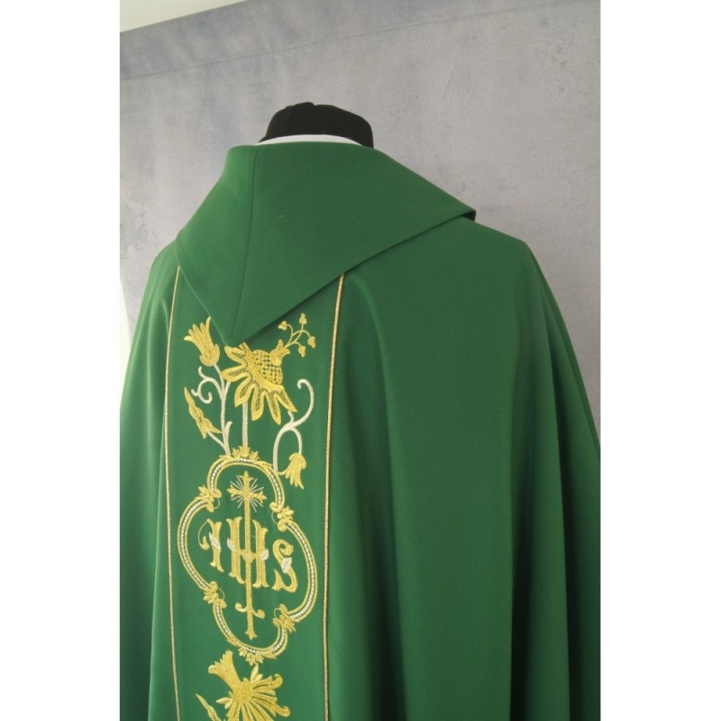 Casula romana bordada na frente e atrás em alto relevo com fio metalizado