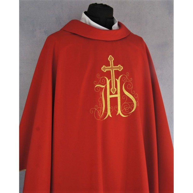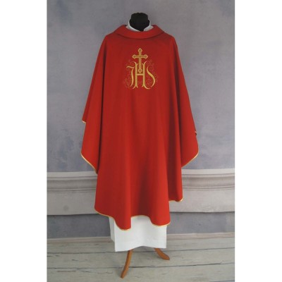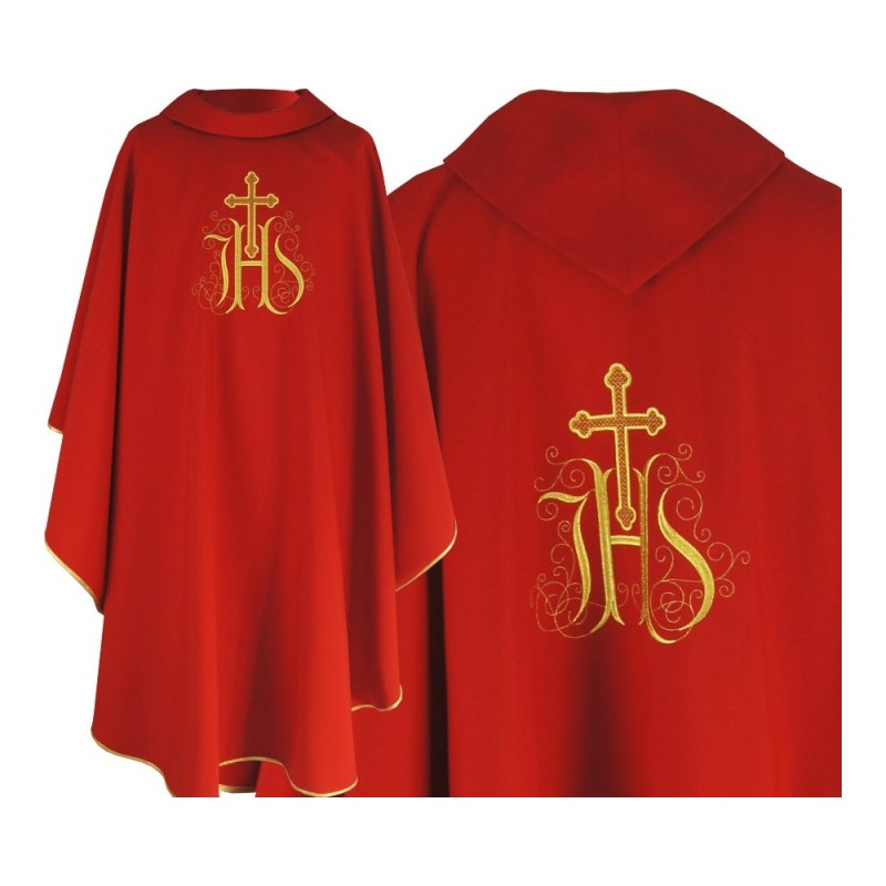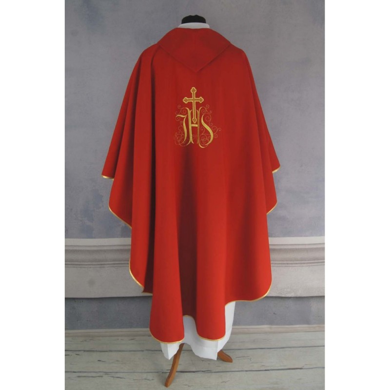 Casula gótica com bordado na frente e atrás. Acabamento em fios de cetim dourado.