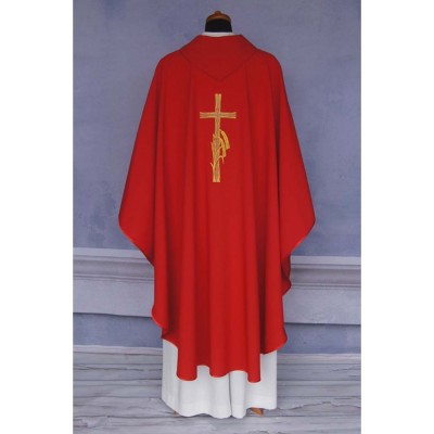 Casula romana bordada em alto relevo com linha dourada de altíssima qualidade.