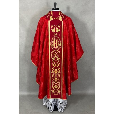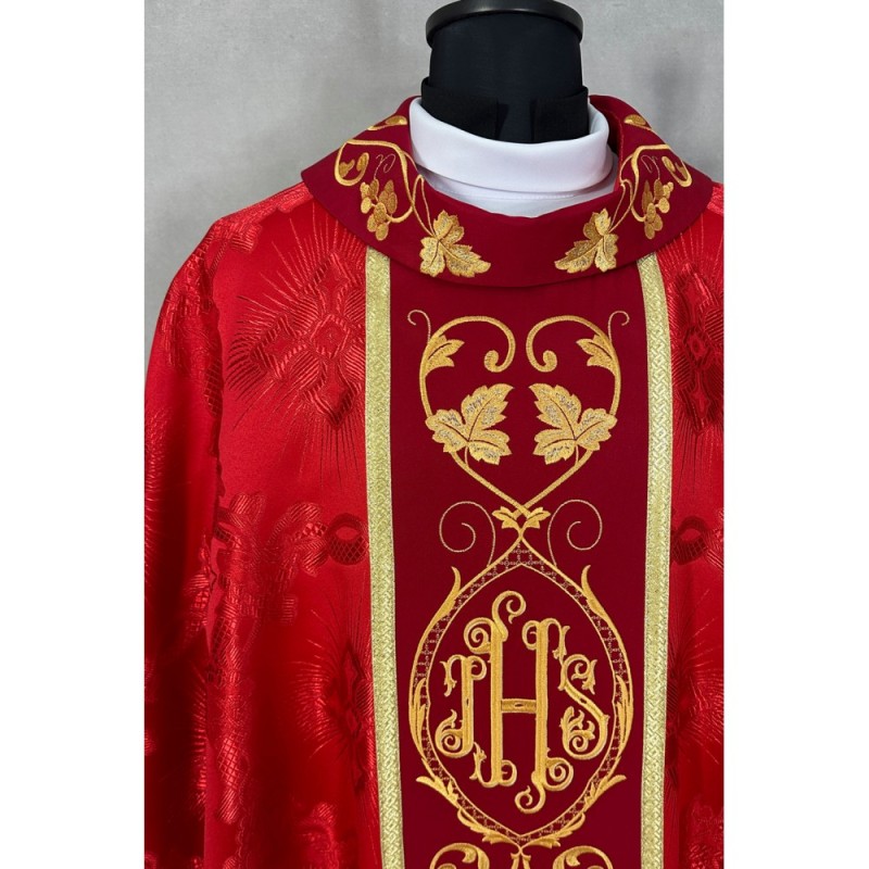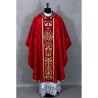 Casula gótica com bordado na frente e atrás e acabamento com fios metalizados.