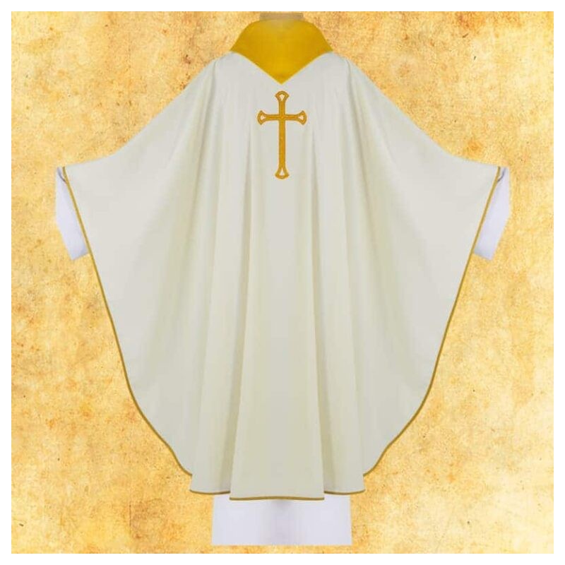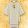 Casula romana bordada em alto relevo com linha dourada.