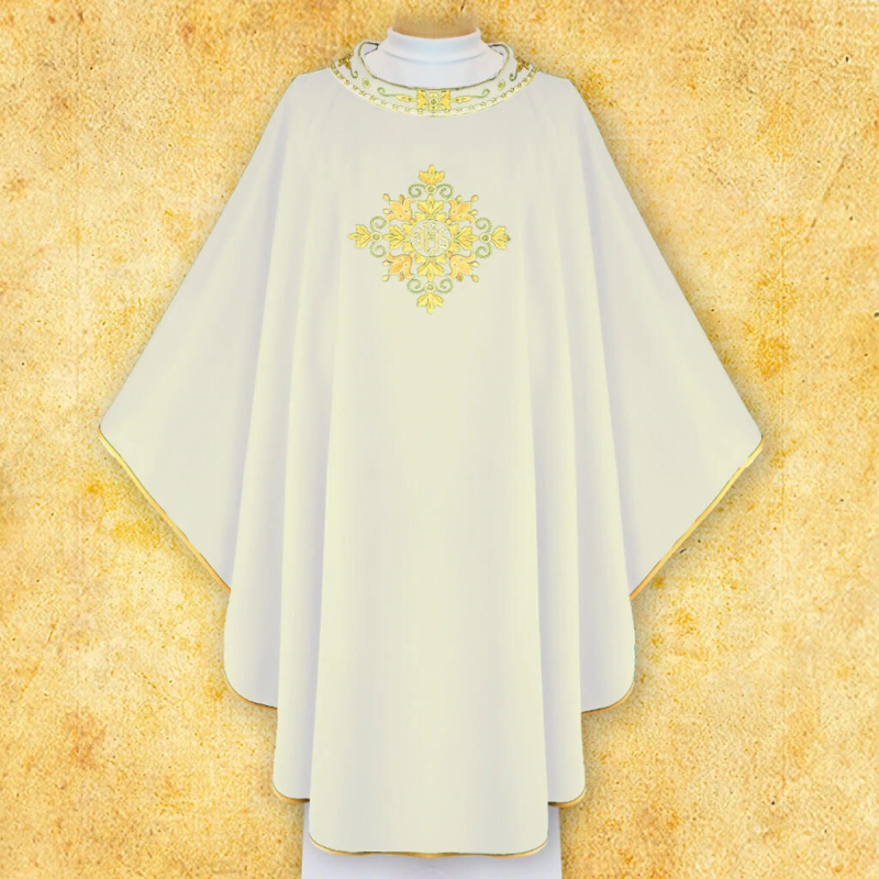 Casula gótica bordado na frente e atrás, com fio dourado de altíssima qualidade.