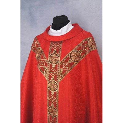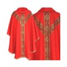 Casula semigótica com bordado na frente e atrás. Acabamento em fios de cetim dourado.
