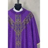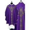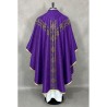 Casula semigótica com bordado na frente e atrás. Acabamento em fios de cetim dourado.