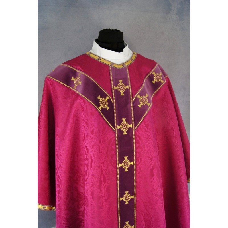 Casula semigótica bordada em alto relevo com linha dourada.