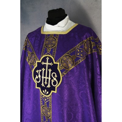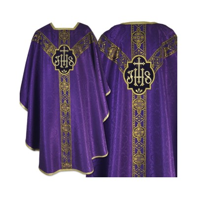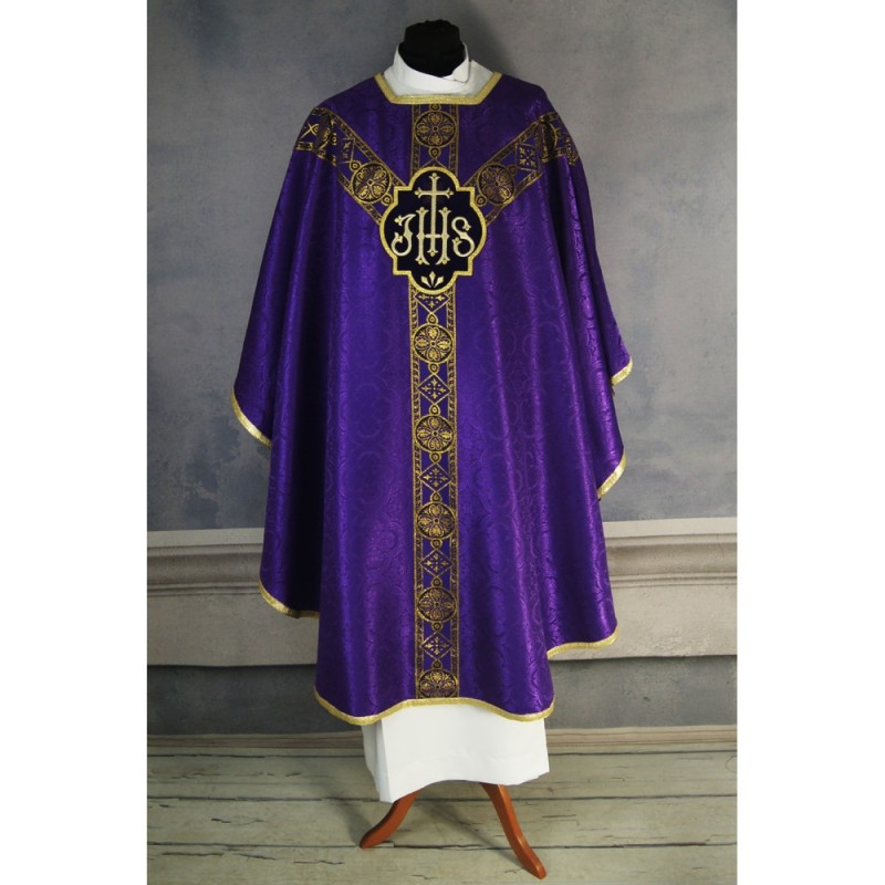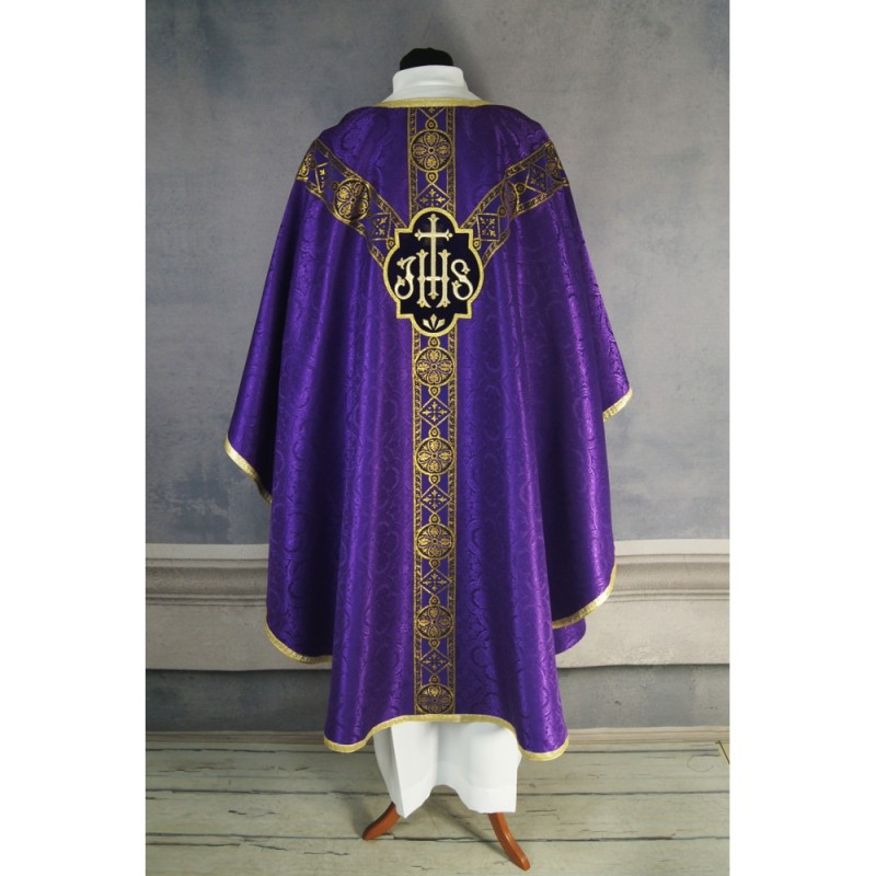 Casula semigótica bordada em alto relevo com linha dourada.