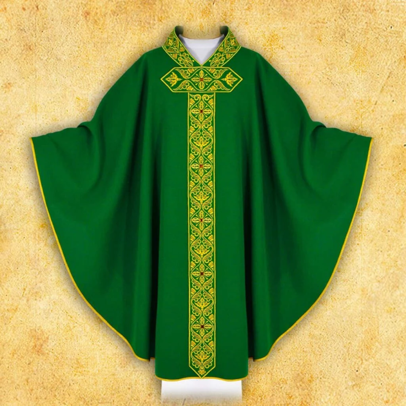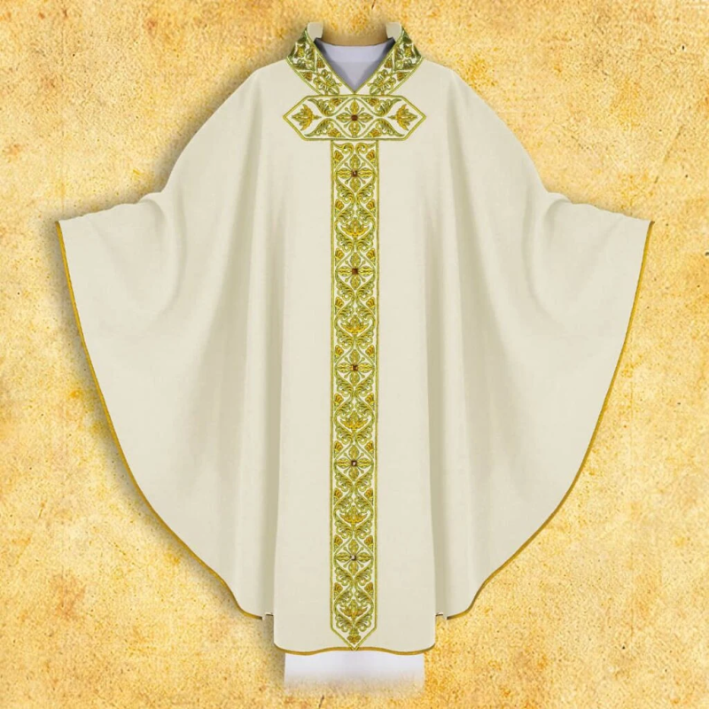 Capa semigótica bordada com cruz na frente e atrás com listra de tecido de altíssima qualidade.