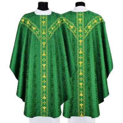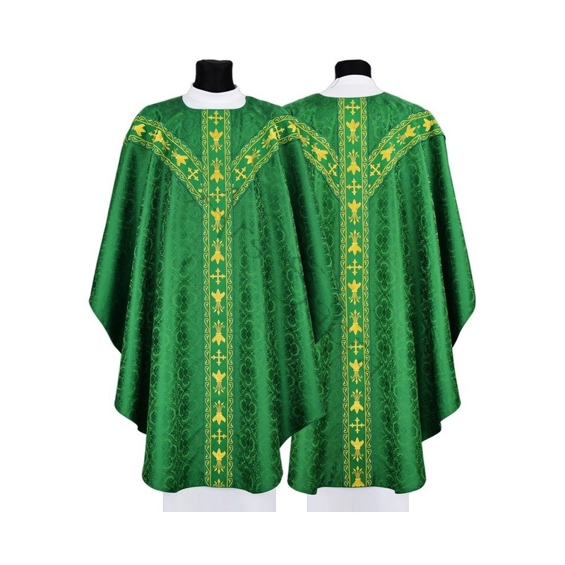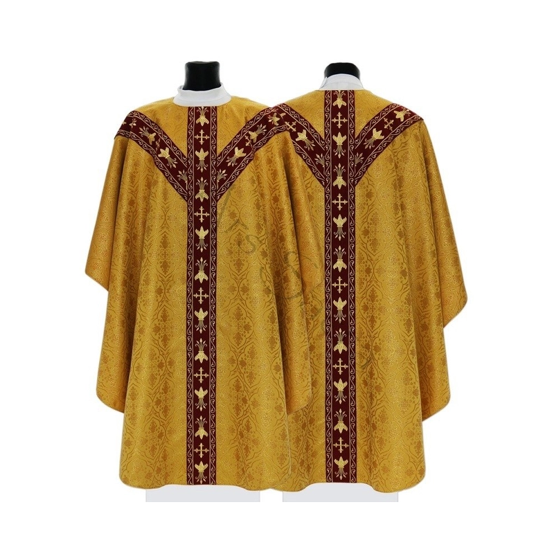 Casula semigótica bordada na frente e atrás com linha dourada de altíssima qualidade.