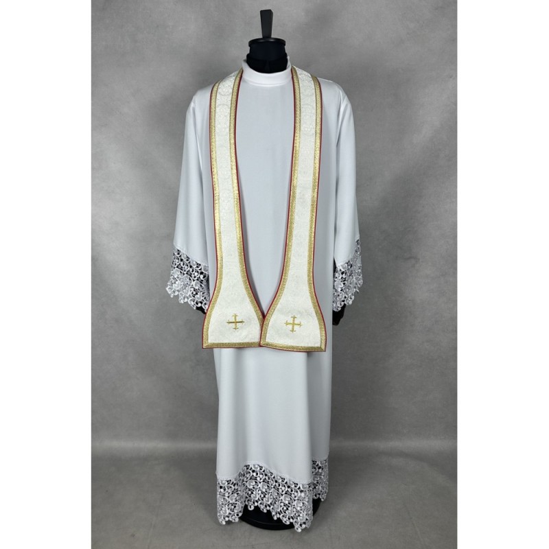 Sobrepeliz bordada na barra e nas mangas de altíssima qualidade.